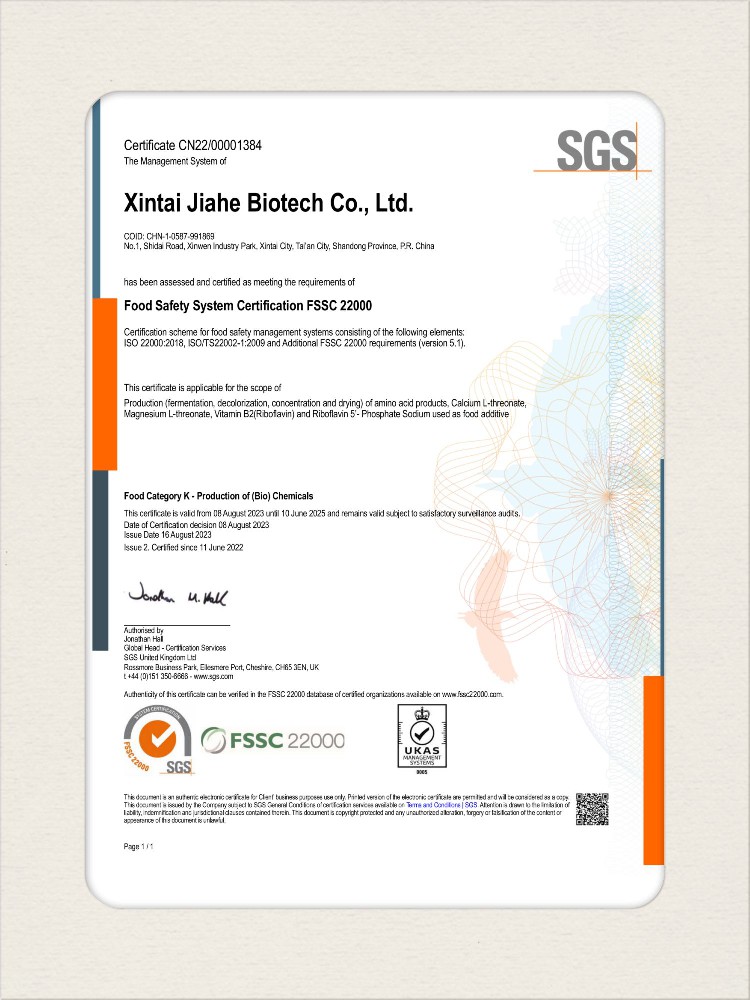 汕頭佳禾生物科技有限公司是一家致力于氨基酸及其衍生物研發(fā)、生產和銷售的國家高新技術企業,先后通過了國家藥品GMP認證,ISO9001質量體系認證、ISO14001環(huán)境管理體系認證。目前,公司擁有“廣東省專精特新中小企業”、“廣東省氨基酸產品工程技術研究中心”、“汕頭市生物發(fā)酵工程技術研究開發(fā)中心”、“汕頭市知識產權優(yōu)勢企業”、“多項國家發(fā)明專利”、“廣東省守合同重信用企業”等多項資質和榮譽,旗下“佳禾牌”系列產品已成為原料藥行業知名品牌。 新泰市佳禾生物科技有限公司成立于2012年8月,注冊資金2億元,公司位于山東泰安新泰市新汶工業園區,是國 家級高新技術企業、山東省“專精特新”企業、山東省制造業單項冠軍企業、泰安市科技型中小企業、泰安市農業產業化龍頭企業、中國生物發(fā)酵產業協會理事單位。